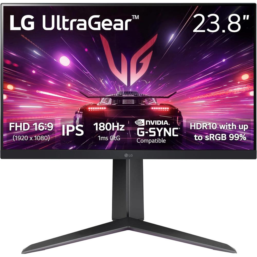 LG 24GS65F-B 24-inch UltraGear Full HD (1920 x 1080) IPS Gaming Monitor, 180Hz, 1ms, NVIDIA G-Sync Compatible, AMD FreeSync, HDR10, HDMI, DisplayPort, Tilt/Height/Pivot adjustable stand, Black