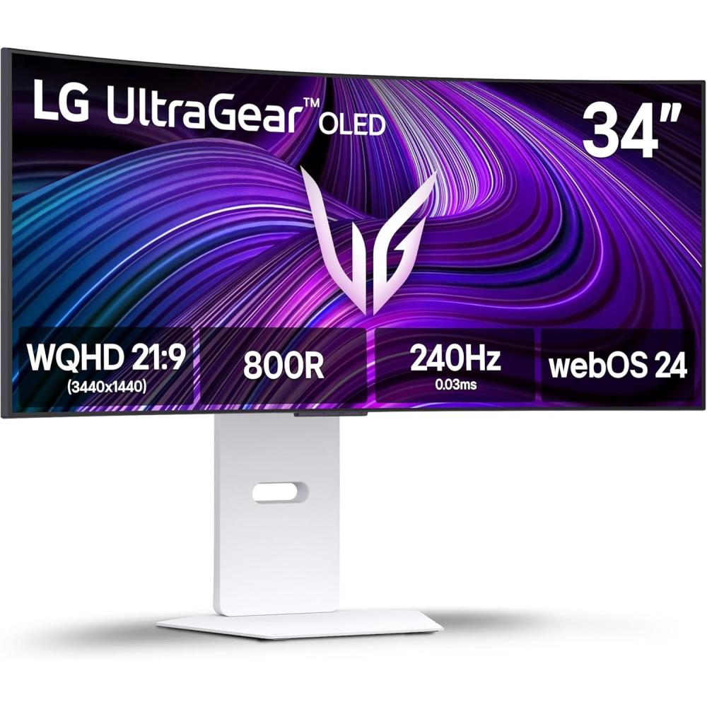 LG 34GX90SA-W 34-inch Ultragear WQHD (3440 x 1440) OLED Curved Gaming Monitor 240Hz, 1ms, NVIDIA G-Sync Compatible, AMD FreeSync Premium, VESA DisplayHDR True Black 400, webOS, USB Type-C, White(34 inch)