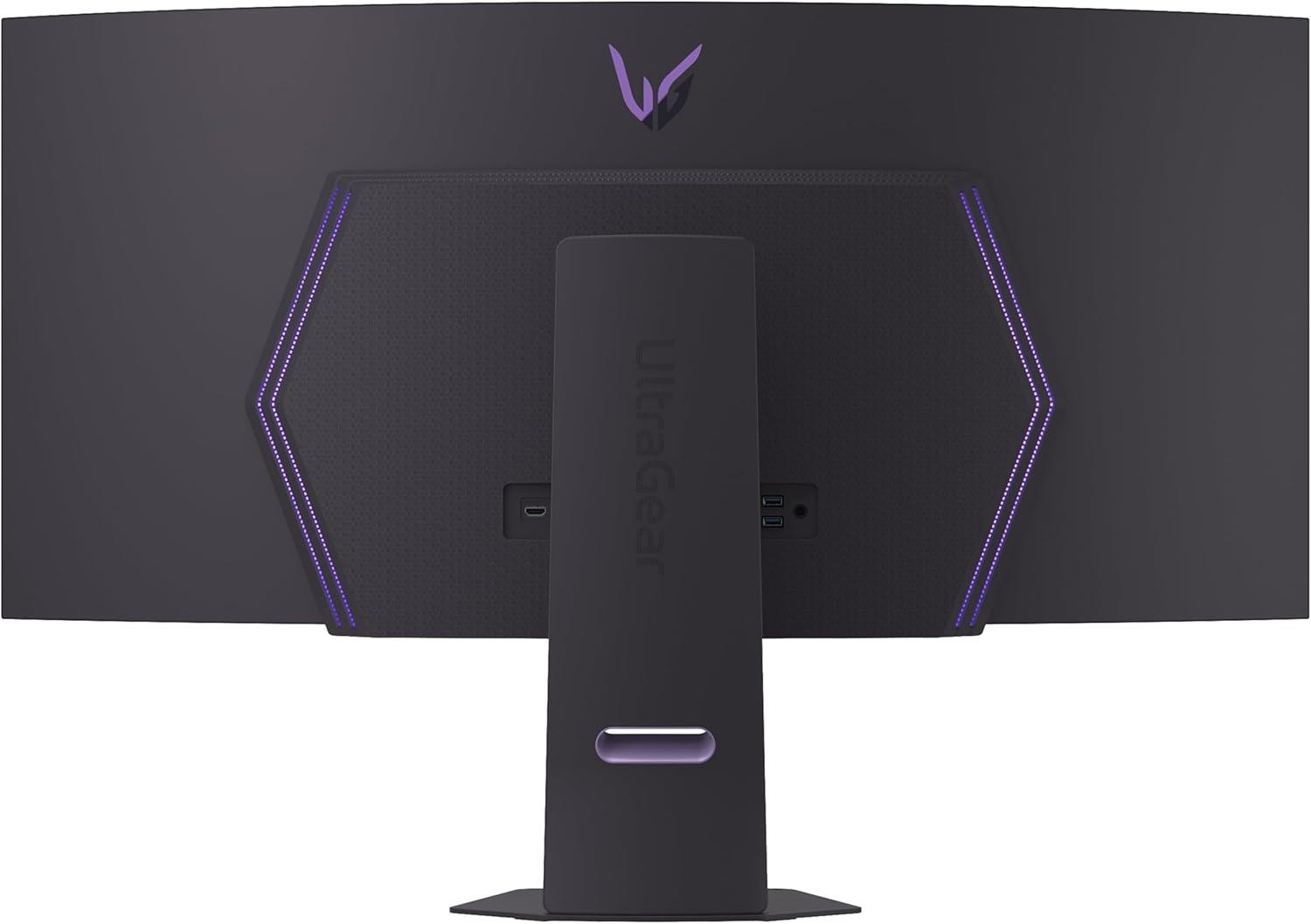 Experience lightning-quick speed with up to a 240Hz refresh rate¹ and 0.03ms response time on a massive 45″ WQHD curved OLED monitor. UltraGear Fact: The 45-inch 21:9 45 Inch UltraGear OLED monitor delivers more screen area than a 49-inch 32:9 aspect ratio screen. The sweeping, steep 800R curve surrounds you in the action. And with the 240Hz refresh rate, and 0.03ms response time, the action is fast, the play seamless and precise. Dive into UltraGear OLED’s immaculate visuals with up to 98.5% of DCI-P3 color coverage and a 1,500,000:1 contrast ratio for stunning blacks and vibrant colors. Adaptive sync technologies FreeSync Premium Pro and NVIDIA G-SYNC compatibility ensure tear-free, stutter-free performance, whether you're on PC or next-gen consoles. Plus, the UltraGear's 2-year OLED limited warranty and OLED Care features give you peace of mind, keeping your UltraGear monitor in top shape. Designed for gamers, the virtually borderless design complements any gaming setup, with height, tilt, and pivot adjustments for optimal comfort. The RBG backlighting creates the mood that’ll upgrade any battlestation.