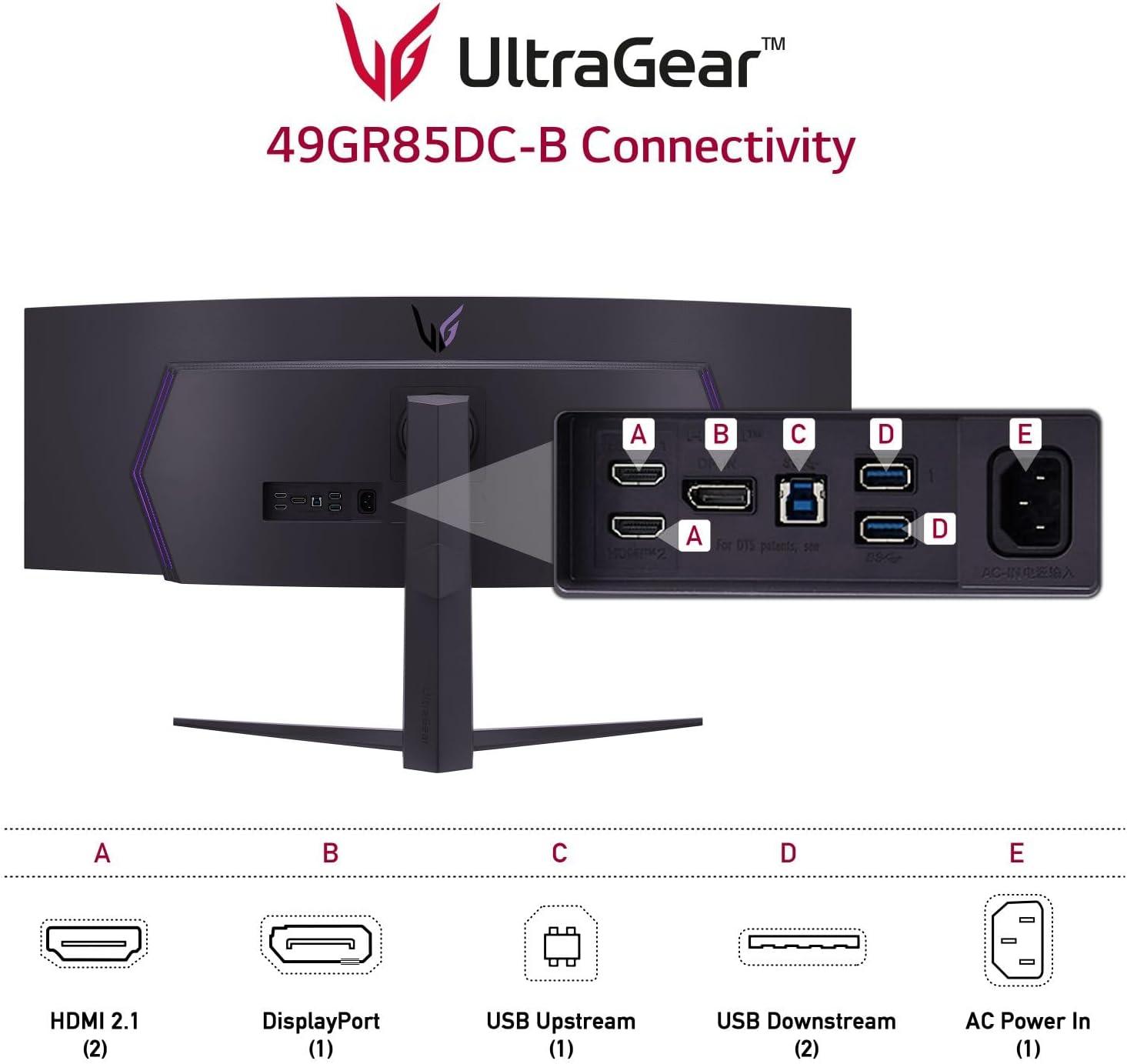 imageLG 49quot UltraGear DQHD 5120x1440 Curved Gaming Monitor 240Hz 1ms VESA DisplayHDR 1000 HDMI 21 DisplayPort 4Pole HP Out DTS HPX AMD FreeSync Premium Pro TiltSwivelHeight Stand Black34 Inch