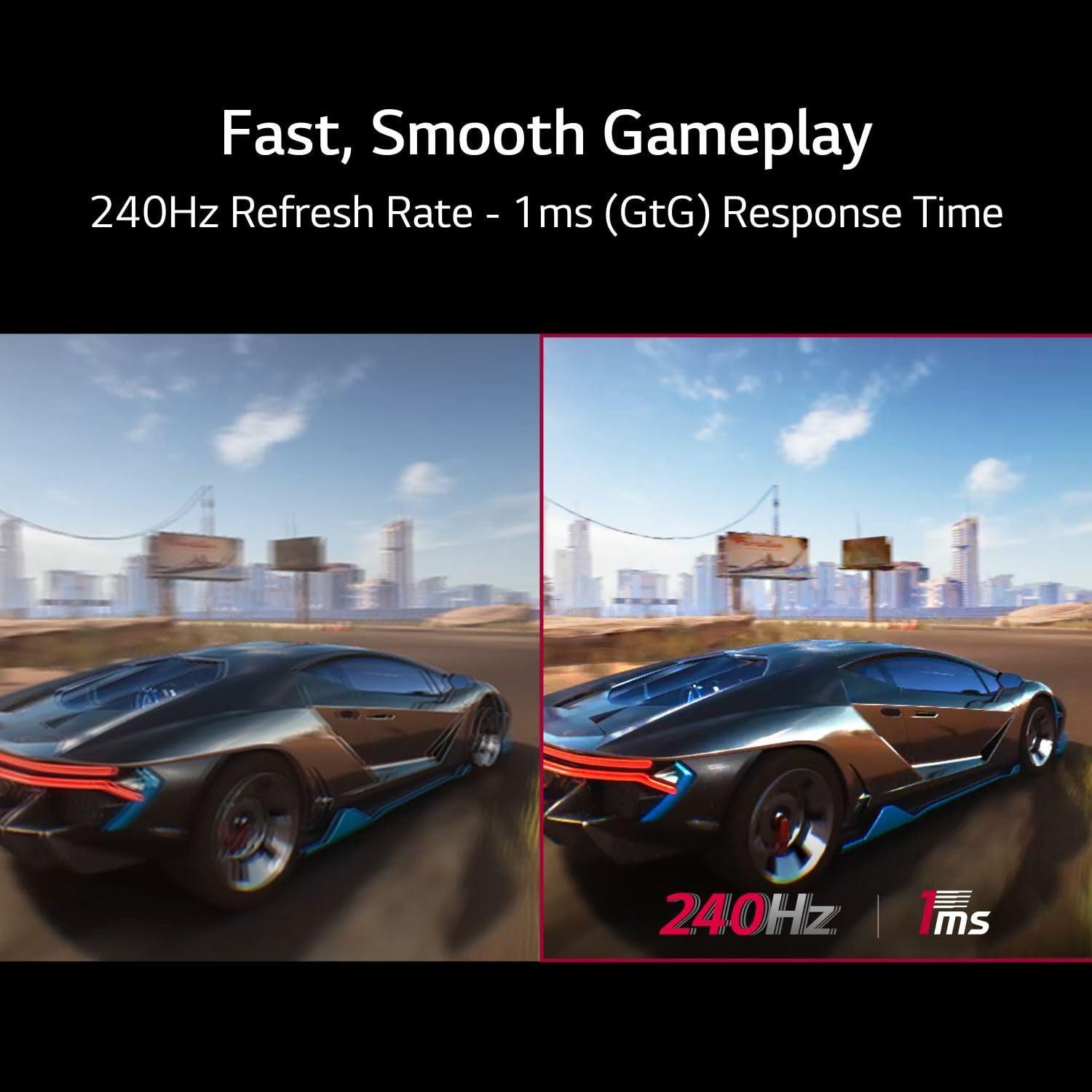 1ms (GtG) – Re-imagine gaming scenes with vivid, responsive gameplay. This LG UltraGear display features vibrant color, contrast, clarity and detail, while delivering an ultra-fast 1ms (GtG) response rate to reduce blur and ghosting.