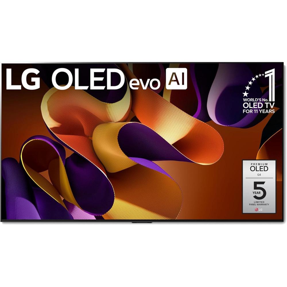 The LG OLED evo G4-Series is powered by the α11 AI Processor for even better picture and performance. Brightness Booster Max produces up to 150% brighter images,* for luminous, high-contrast picture quality, even in well-lit rooms. Display your OLED like a picture with the included wall bracket that creates a flush mount.** When you're not watching, you can display art, photos and other content to blend the LG OLED evo G4 into your surroundings. Search less and stream more, thanks to the next generation of AI technology from LG webOS 24. And with Quick Cards, you can group your favorite apps and use the Magic Remote to easily find exactly what you're looking for—like instant access to over 300 free channels with LG Channels.*** Every LG OLED comes loaded with Dolby Vision for extraordinary color, contrast and brightness, plus Dolby Atmos**** for sound you can feel all around you. You'll land in the center of the action with FILMMAKER MODE, allowing you to see films in the director's original formatting. Plus, with a 5-year panel warranty,***** you can watch on and on with confidence and peace of mind that we stand behind our premium LG OLED evo TVs.