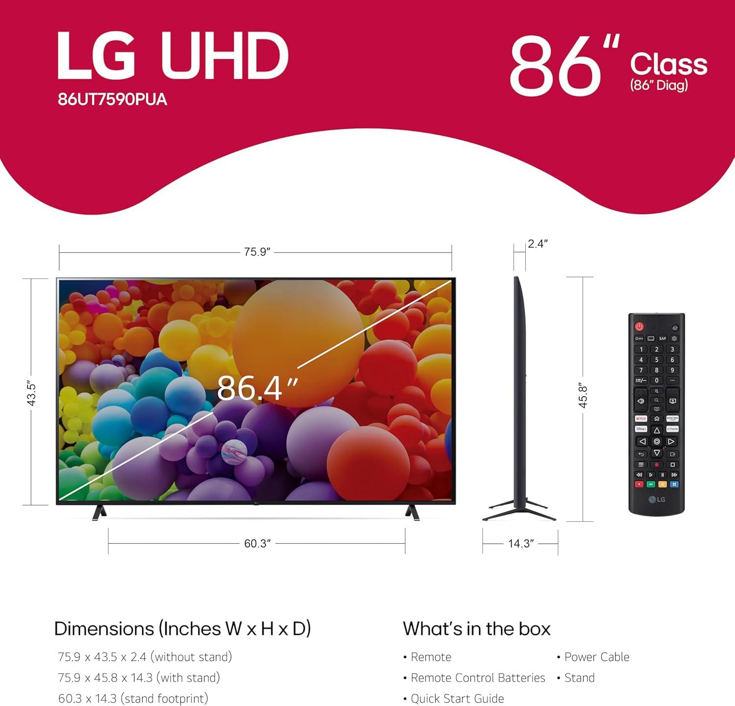 LG 86-Inch Class UT75 Series LED Smart TV 4K Processor Flat Screen AI-Powered with Alexa Built-in (86UT7590PUA, 2024)(86 inches)