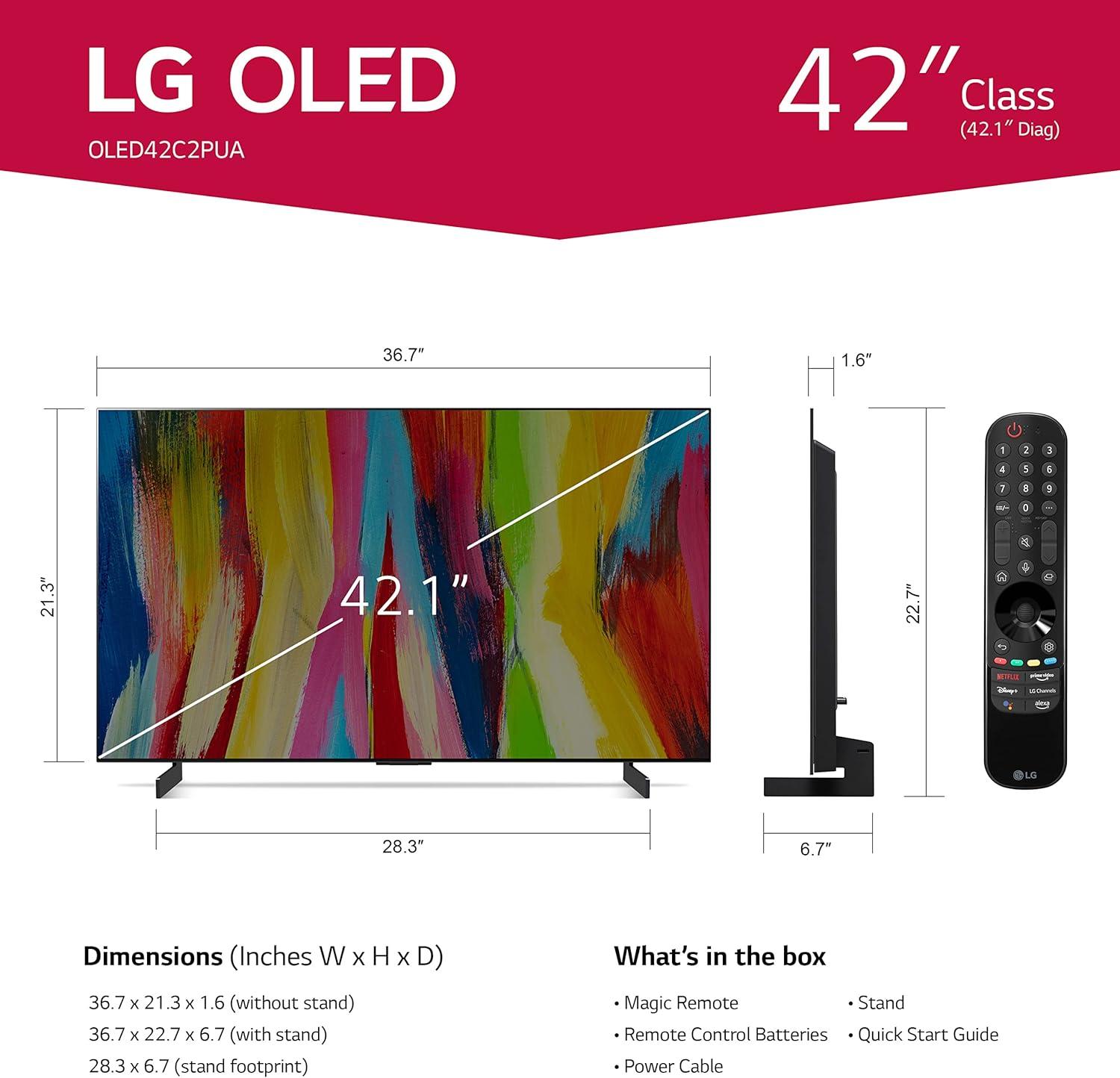 LG C2 Series 55-Inch Class OLED evo Smart TV OLED55C2PUA, 2022 – AI-Powered 4K TV, Alexa Built-in, Dark Silver(42 inch)