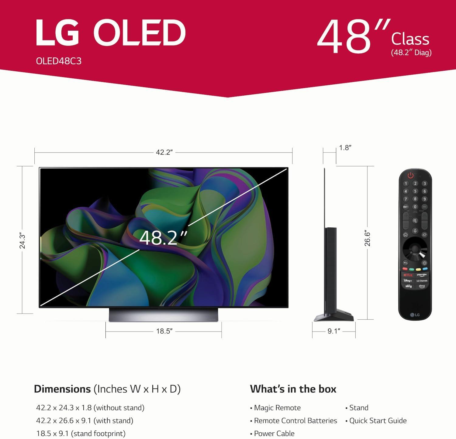 LG C3 Series 48-Inch Class OLED evo Smart TV OLED48C3PUA, 2023 – AI-Powered 4K, Alexa Built-in(42 inch)