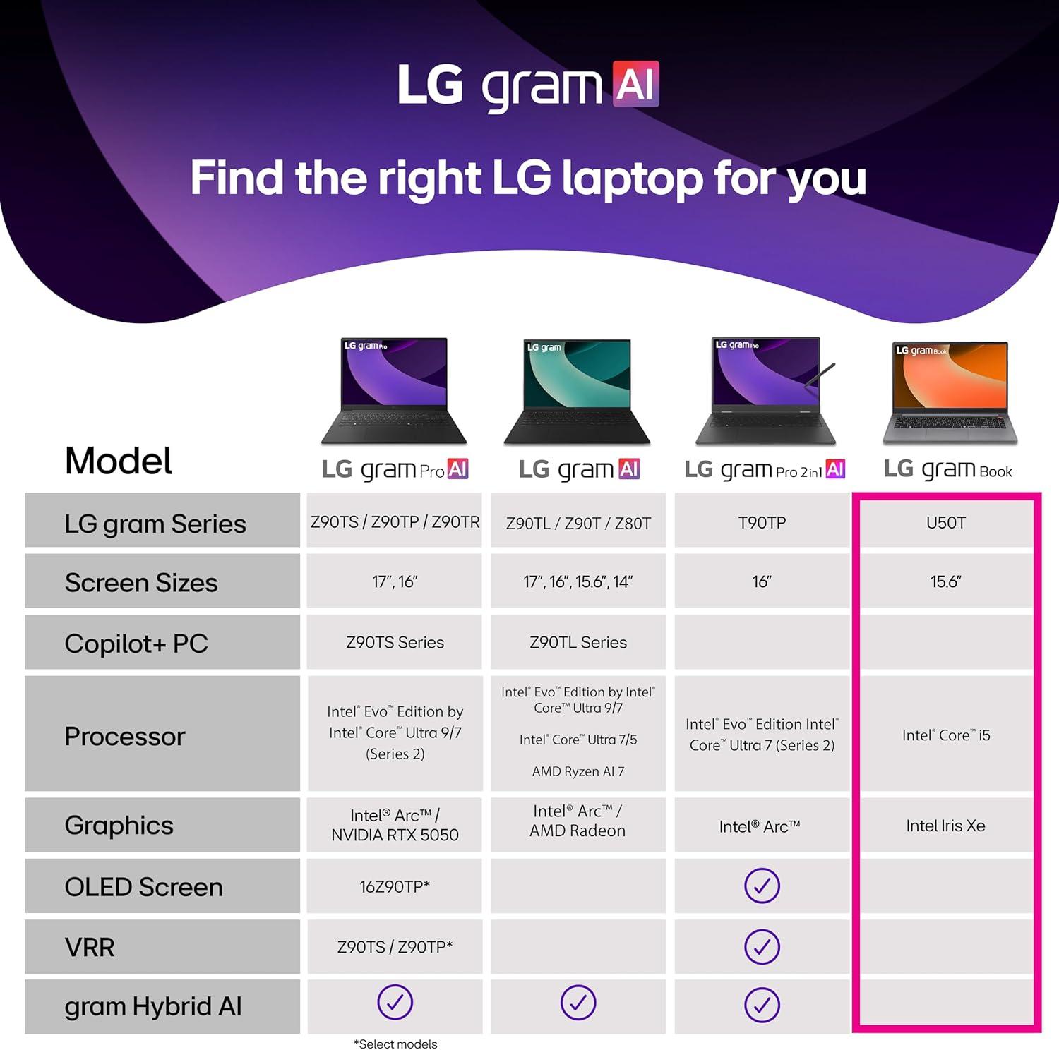 Heavy on specs. Light on weight. – Slim and light, the LG gram Book laptop slips into your bag without weighing you down—perfect for commutes, coffee shops, or couch-side productivity.