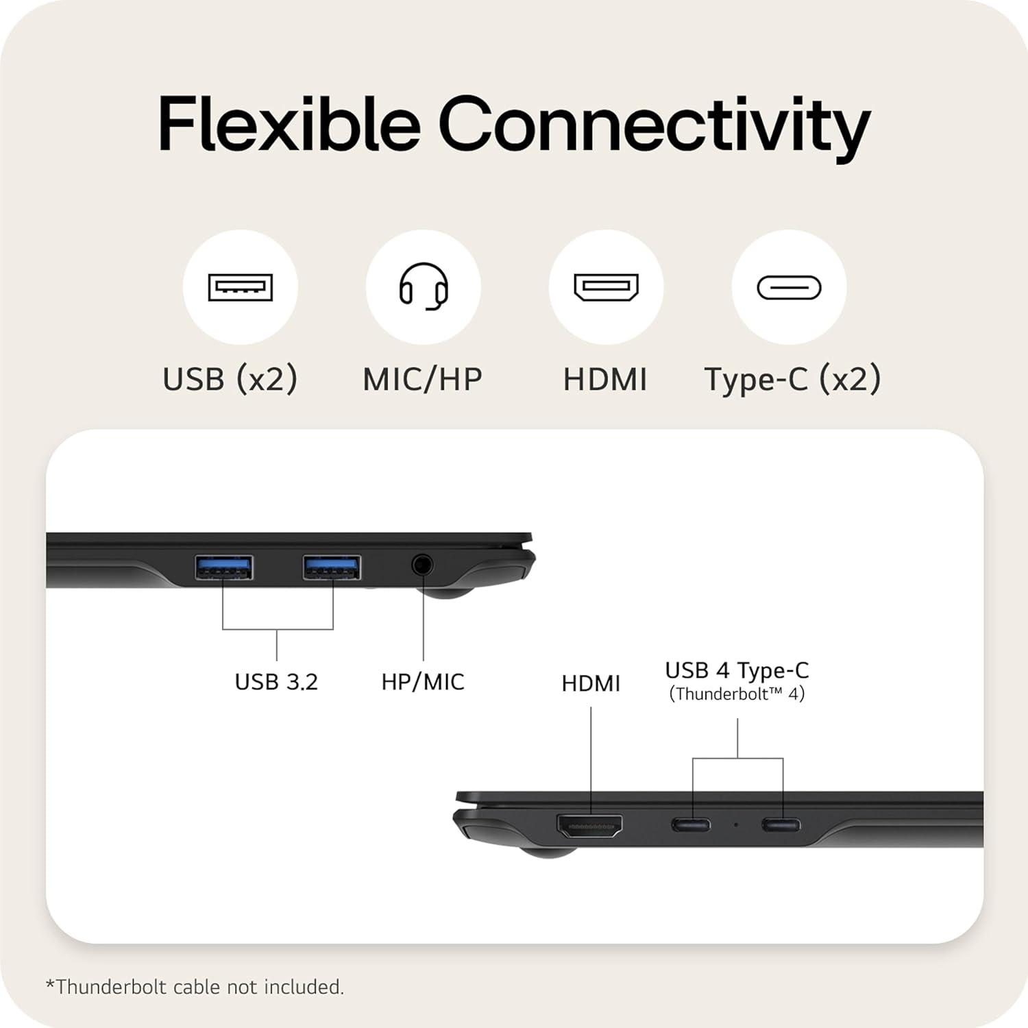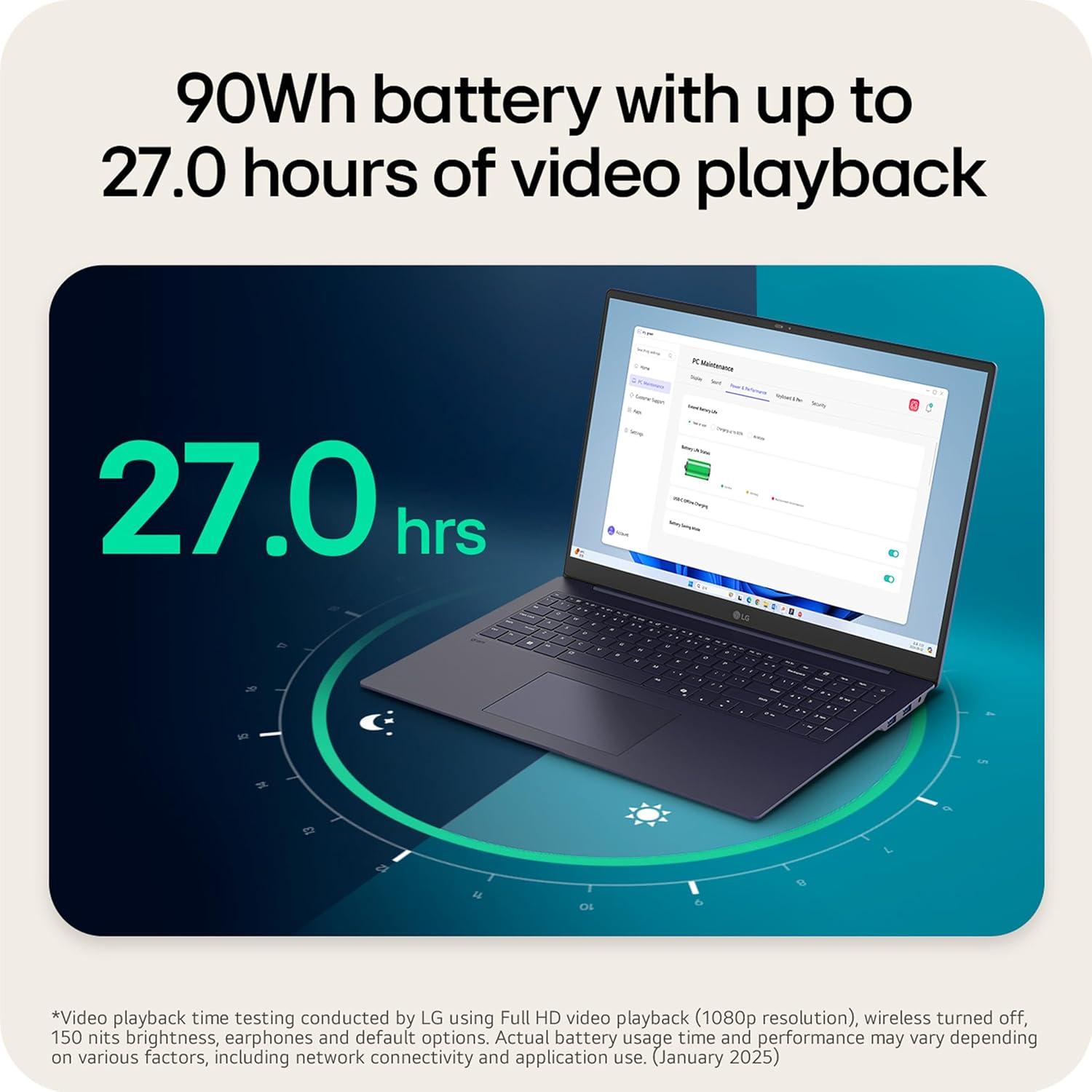 The Power to Stay Unplugged – Powered by a 90Wh high-capacity battery offering up to 27 hours of video playback time and equipped with our AI Smart Assistant, gram analyzes user patterns to optimize battery efficiency. Boost your productivity and enjoy uninterrupted play.