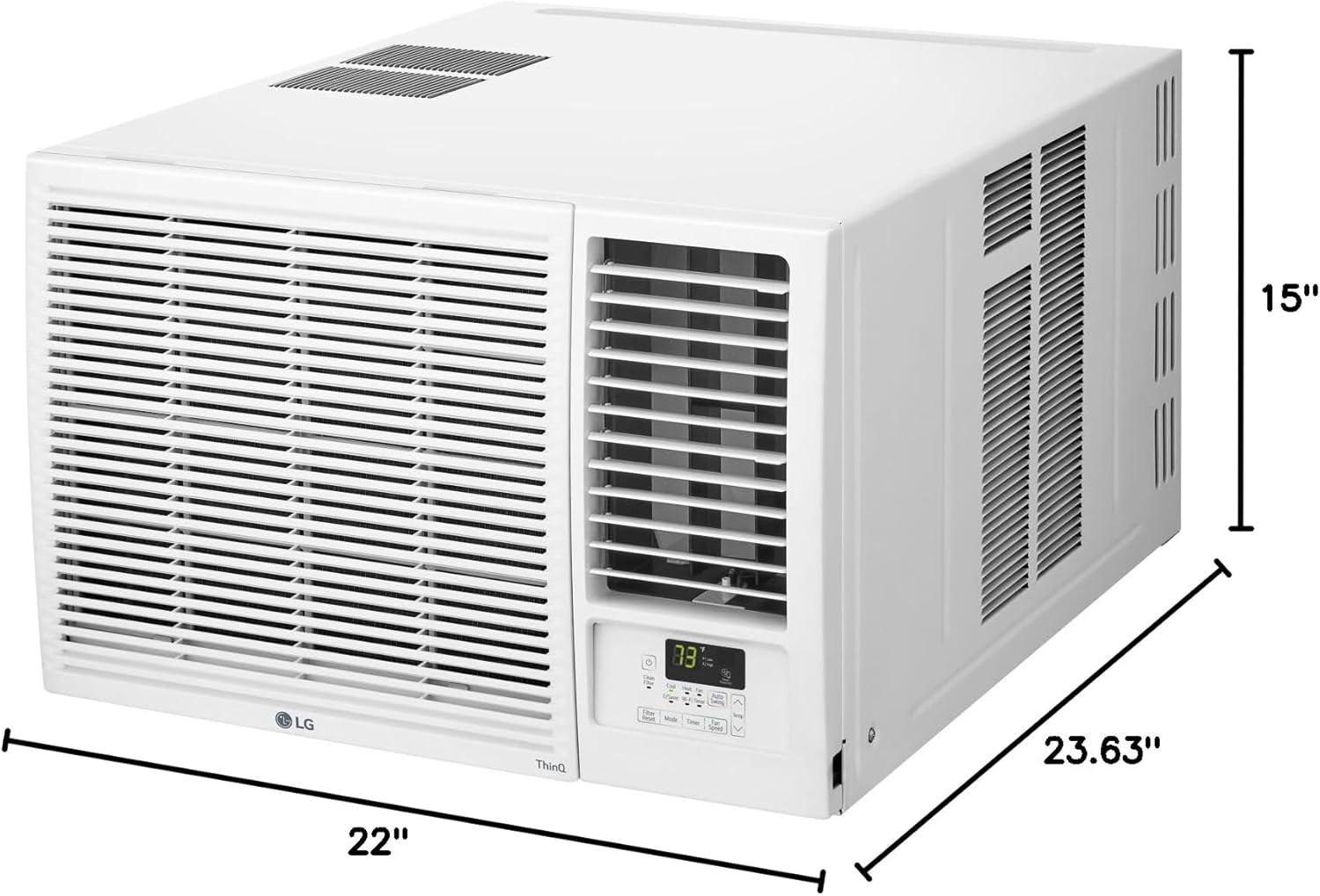 The LW1823HRSM is the SMART solution for maintaining a comfortable indoor environment. With LG ThinQ technology, you can effortlessly control your air conditioner using your smartphone or through voice commands with Amazon Alexa and Hey Google. Perfect for cooling medium to large rooms up to 1000 sq. ft., this window unit provides ample cooling power for a wide range of spaces. On cooler days, you can even enjoy the added warmth provided by the supplemental heat option. With 2 cooling and fan speeds, as well as a 24-hour timer, you have the flexibility to create the perfect cooling schedule. The 4-way air deflection feature ensures that the airflow can be directed precisely where it's needed the most—whether it's for cooling, heating, dehumidifying, or circulating the air. In the event of a power outage, the auto restart feature will automatically turn your air conditioner back on once power is restored. Additionally, the LW1823HRSM comes with a remote control, a window installation kit for hassle-free setup, a removable and washable filter, and a check filter alert to remind you when it's time to clean the filter. Stay comfortable and cool with this reliable and versatile air conditioner from LG.