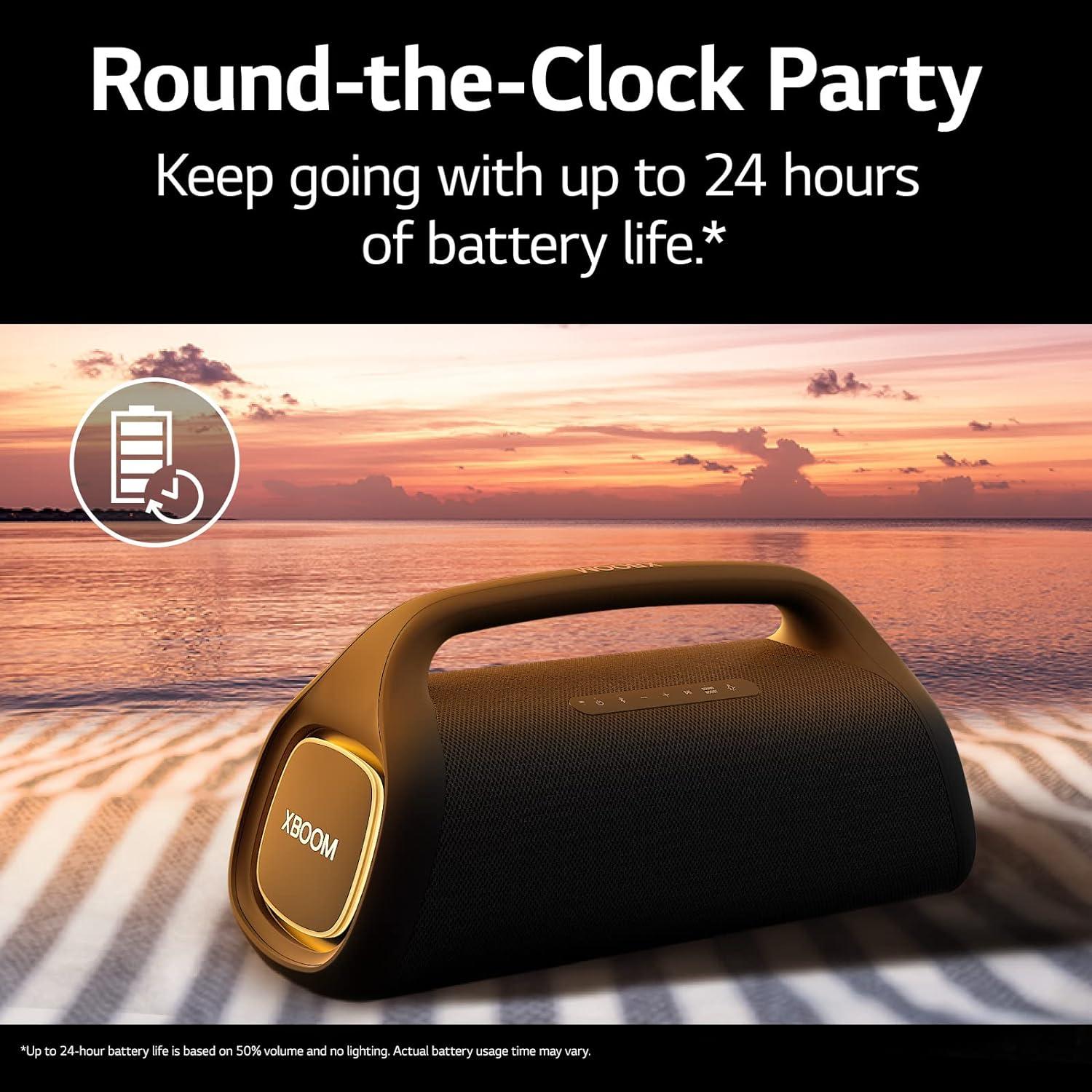 Dazzling Lights and Superb sound meets brilliant stage lighting, for a multisensory experience you can take anywhere, with up to 24 hours of battery life*, plus IP67 rated dust and water resistance**. Savor our most powerful high-quality speaker sound as the compression horn tweeter produces dynamic sound and the 4.5-inch woofer brings the bass to life. Plus it has a dome-style lighting projector that will put a vibrant lightshow on the wall to get the party started. *Up to 24-hour battery life based on 50% volume and no lighting. Actual battery usage time may vary. **IP67-rating tested in fresh water. Speaker should not be submerged in water. Use with caution around bodies of water, such as swimming pools or the ocean. ***Warning – Flashing lights may trigger seizures or other health problems in people with photosensitivity issues, and they should consult their physician before using these features. Individuals who experience symptoms such as seizures, dizziness, confusion, unusual vision problems, or disorientation should immediately stop using the product and seek medical attention if the symptoms persist. *Some features require 3rd party subscription or account. Google is a trademark of Google LLC. Amazon, Alexa, and all related marks are trademarks of Amazon.com, Inc. or its affiliates. Siri is a registered trademark of Apple Inc.